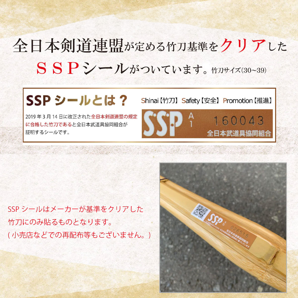 ※機械製造による商品ではなく人の手によって造られている竹刀の為、若干の誤差が生じます。