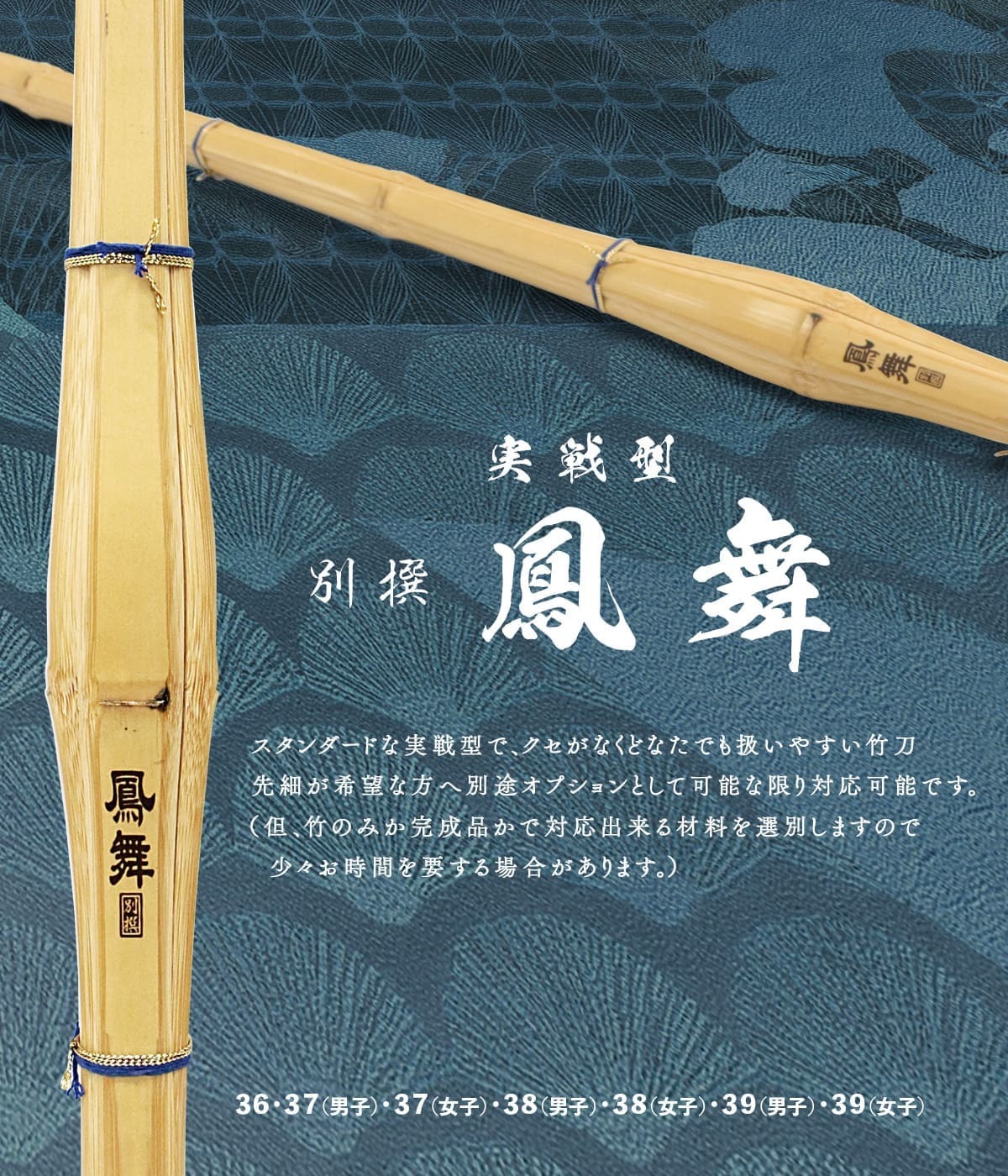 注)現在保有竹刀在庫上で先細可能な目方の竹刀が少ない為対応見合わせております。