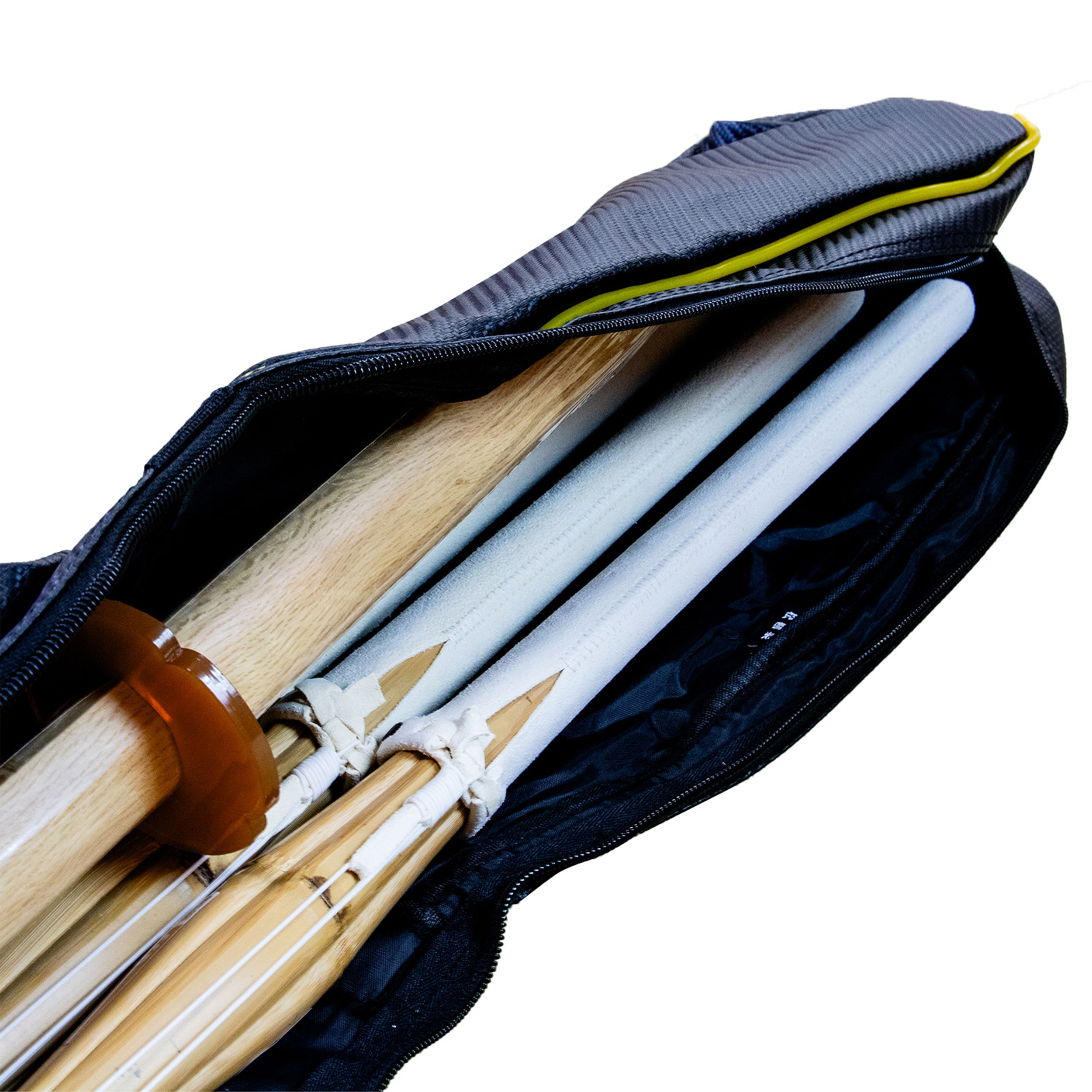 内部には仕切りがあり、竹刀同士がぶつかって傷つかないよう工夫されています。