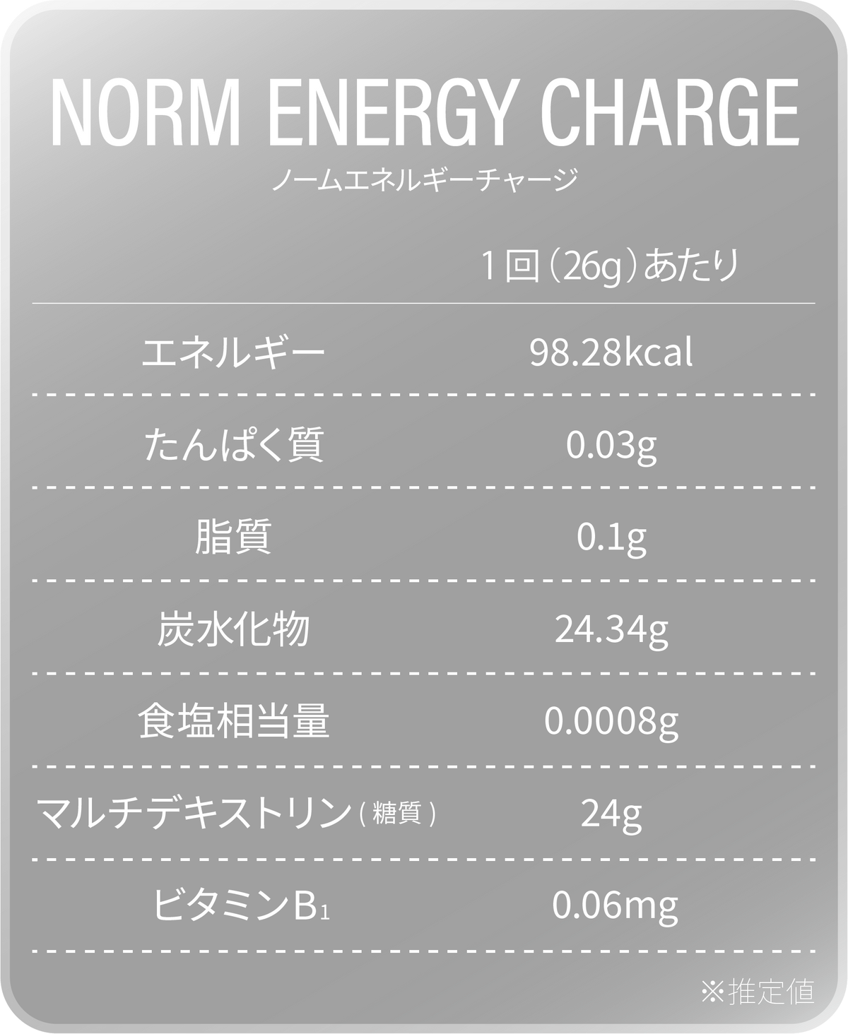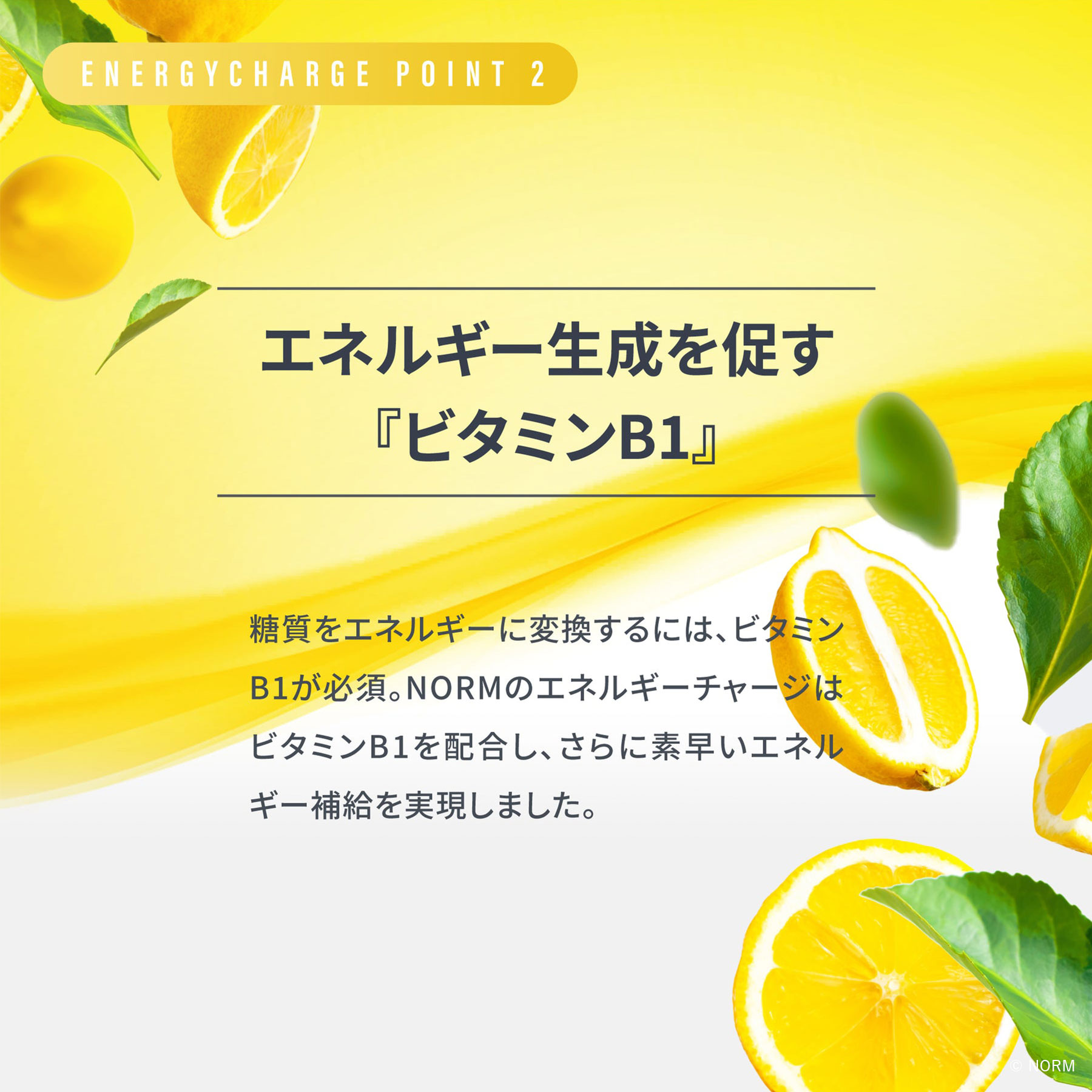 糖質の吸収効率を高めるビタミンB1を配合し、さらに素早いエネルギー補給を実現しました。