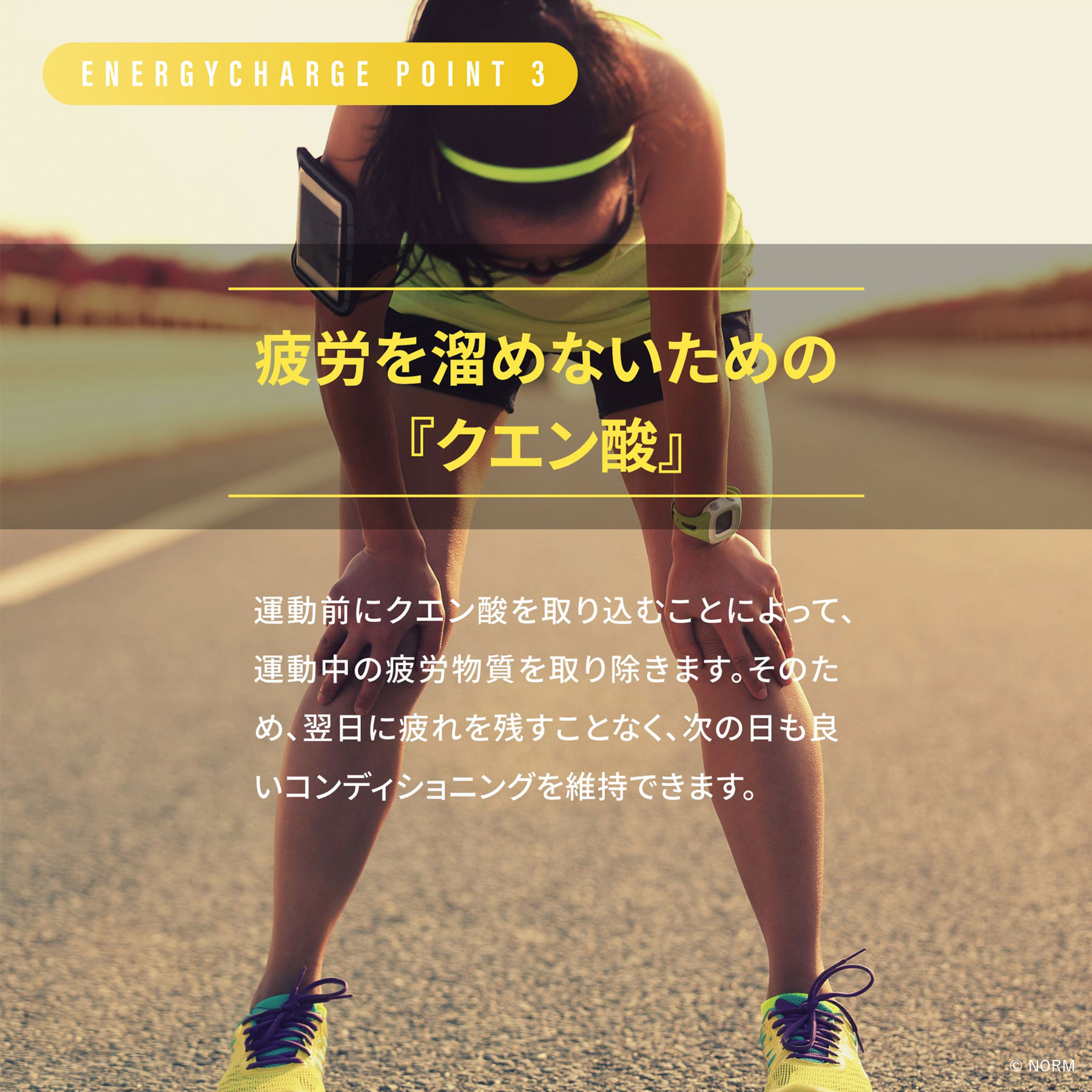 運動前にクエン酸を取り込むことによって、翌日も最高のコンディションでトレーニングに臨めます。
