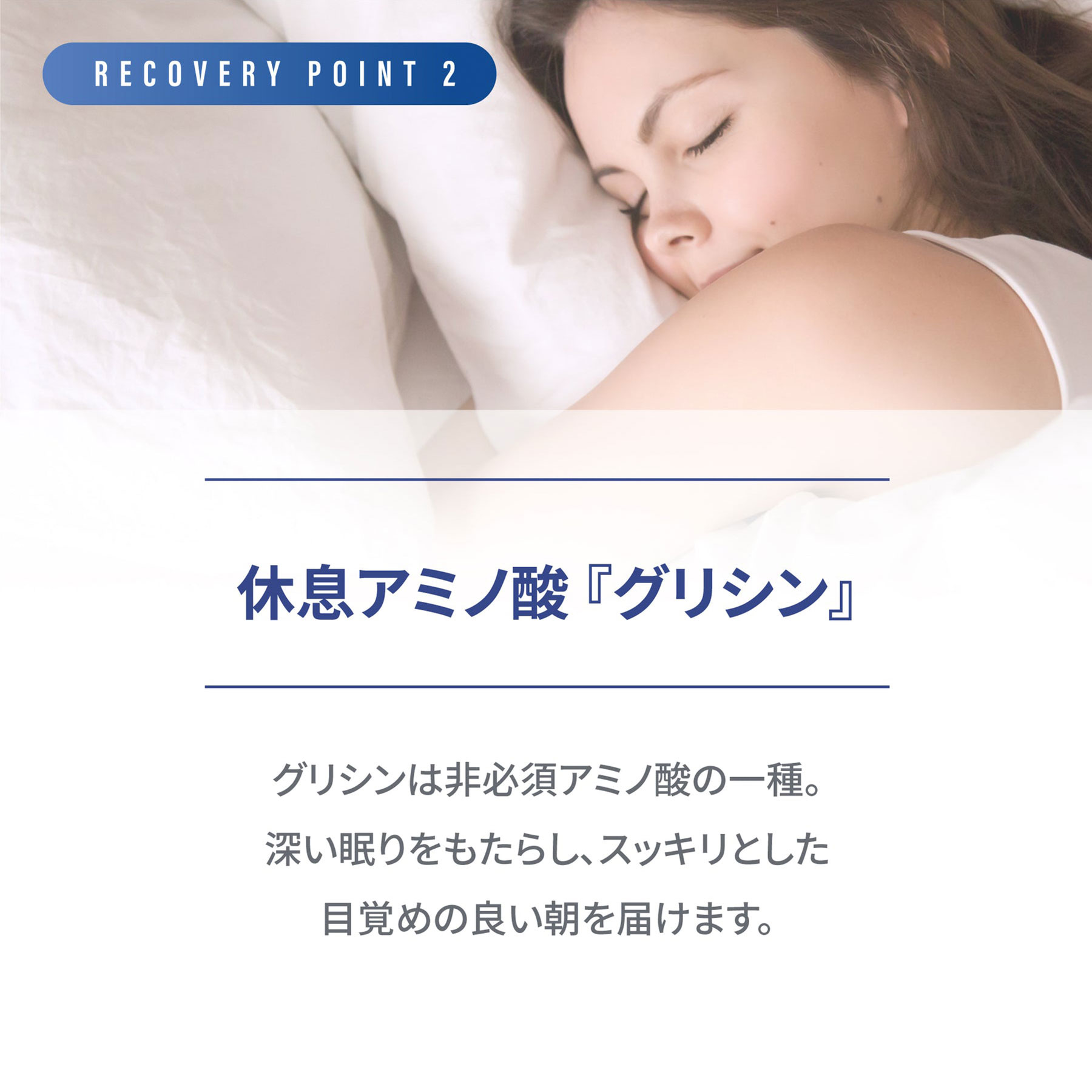 話題の休息アミノ酸として注目を集めています。スッキリとした目覚めのいい朝を届けます。